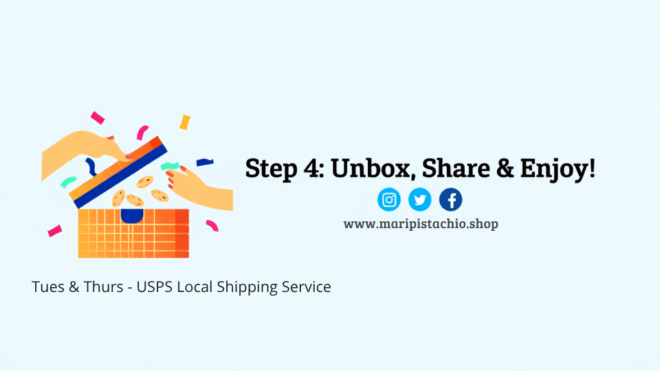 We love seeing our cookies in the wild! Feel free to share your experience and tag us on social media. @maripistachio.shop